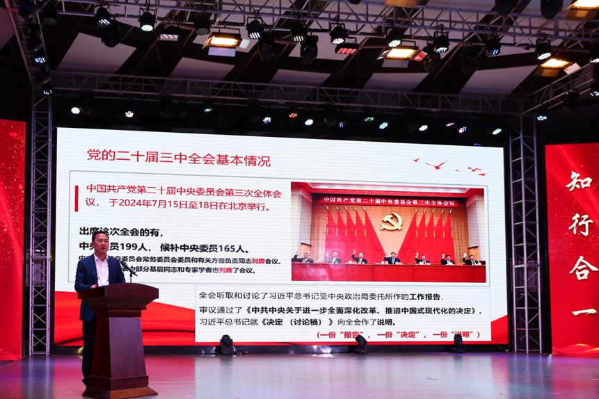 为全面深入学习宣传贯彻党的二十届三中全会精神,学深悟透习近平总书记关于全面深化改革的一系列新思想、新观点、新论断,教育引导全体师生统一思想、凝聚共识,进一步准确把握全会精神的精髓要义,根据公司统一部署,betway88西汉姆联积极响应号召,分两批次邀请公司学习贯彻党的二十届三中全会精神师生宣讲团开展宣讲报告会。公司党政领导班子、全体辅导员及2000余名在校生参加宣讲报告会。报告会由公司党总支副书记周玳宜主持。