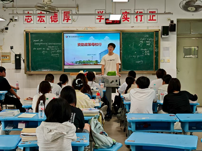 宣讲普及政策,点燃教育希望。除了家访活动,实践团队还同步开展“资助政策进母校、进社区”活动。回到母校,团队成员面向学弟学妹进行宣讲,详细讲解从高中到高校的资助体系,并结合实际案例解读政策,激励学弟学妹勇敢追梦;走进社区,通过设置宣传展板、举办宣讲会等形式,向居民普及资助政策,广泛覆盖不同年龄段、不同需求群体,让资助政策走进千家万户,为更多家庭点燃教育希望,推动资助政策在更广泛的群体中落地生根、开花结果。