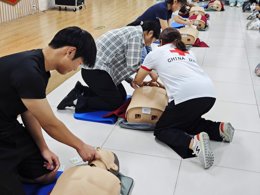 在实操演练阶段,讲师们利用模拟人、AED等专业教具,分组轮流实操。针对胸外按压姿势不标准,人工呼吸时气道未完全开放等问题,讲师及时示范纠正,确保每位参与者的动作规范到位,现场学习氛围浓厚。