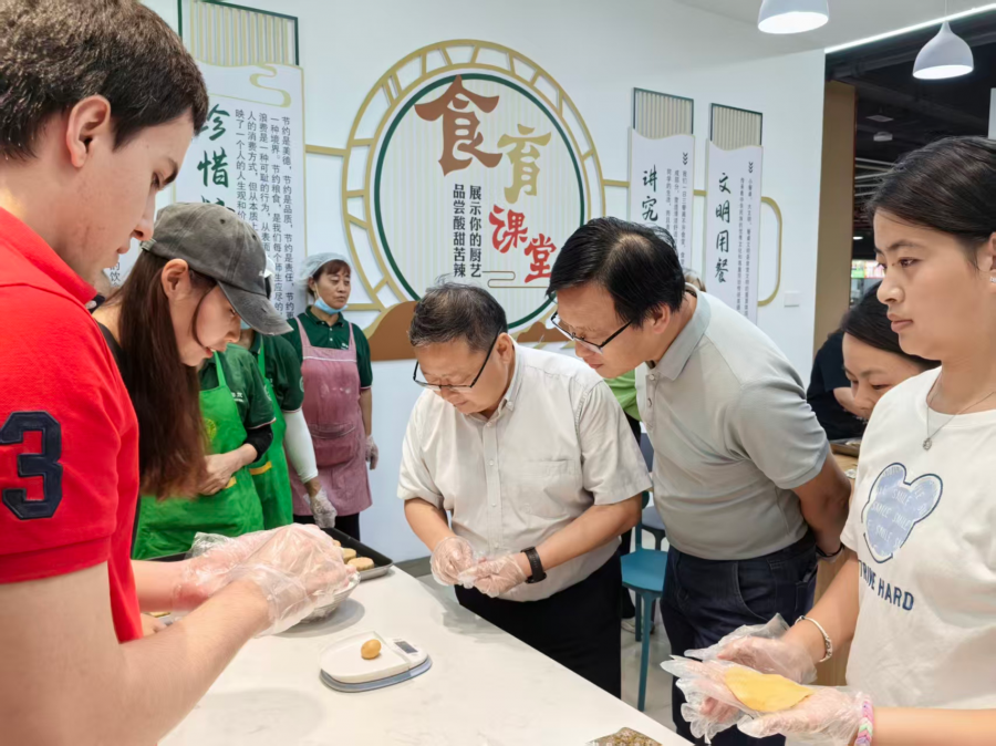 暖心话家常,共叙成长路。手工活动结束后,周勇与同学们亲切交流。他详细询问了少数民族员工的饮食适应情况、外省籍员工的学业与生活需求,以及职工在语言学习、文化融入方面遇到的问题。周董事长的话语温暖而有力,让在场员工深受感动。同学们也纷纷敞开心扉、积极发言。外省籍员工表示,此次活动让自己深切感受到节日的浓厚氛围,有效缓解了佳节来临之际的思乡之情;职工代表则用略显生涩却格外真诚的中文,表达对中国传统节日的喜爱,直言在校园中真切感受到了 “家” 的温暖。活动最后,同学们将亲手制作的月饼细心打包装袋,递到每个人手中,大家纷纷表示要将这份温暖传递给身边的同学,让校园的关怀惠及更多人。